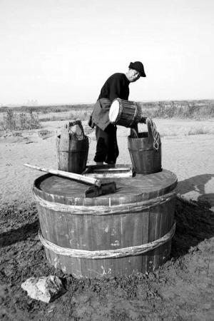 刮泥算是小活,不用花很大力气,女人小孩都可以干。只是从早到晚顶着日头,又穿得极少,不论男女老少,一律晒得黑不溜秋。沈金水要干的是重活,在女人和小孩用拖刀倒走着刮泥的时候,沈金水便把咸泥一担一担挑进漏圈。漏圈是一个无底大木桶,直径三米,高到腰际,底部铺一层两寸厚的稻草,稻草下面有一根打通关节的毛竹管,沥出的卤水通过竹管流入地下卤池。