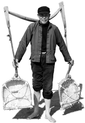 还土,是晒盐人最重的活。前面挑的咸泥是干土,一担重一百五六十斤,湿土加倍,一担三百来斤。沈金水老人说,压在肩上,脚胖骨喇喇叫抖。还不能就扔在旁边,必须要挑回白地,散开,等待钱塘江的潮水再一次把它们浸足盐分,再拖刮,挑回,渗漏,沥卤。